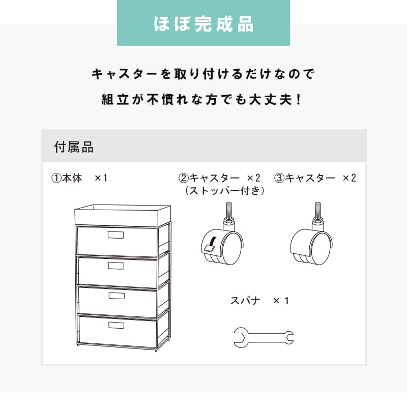 引き出し4段スプレー缶やボトルタイプの洗剤などを収納。