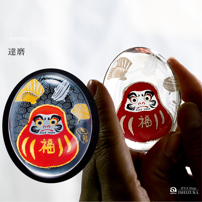 ・達磨=魔除け、無病息災。禅宗の達磨大師が赤の衣を纏っていたことがモチーフ。赤は魔除け・病気を治す力がある、と謂われています。