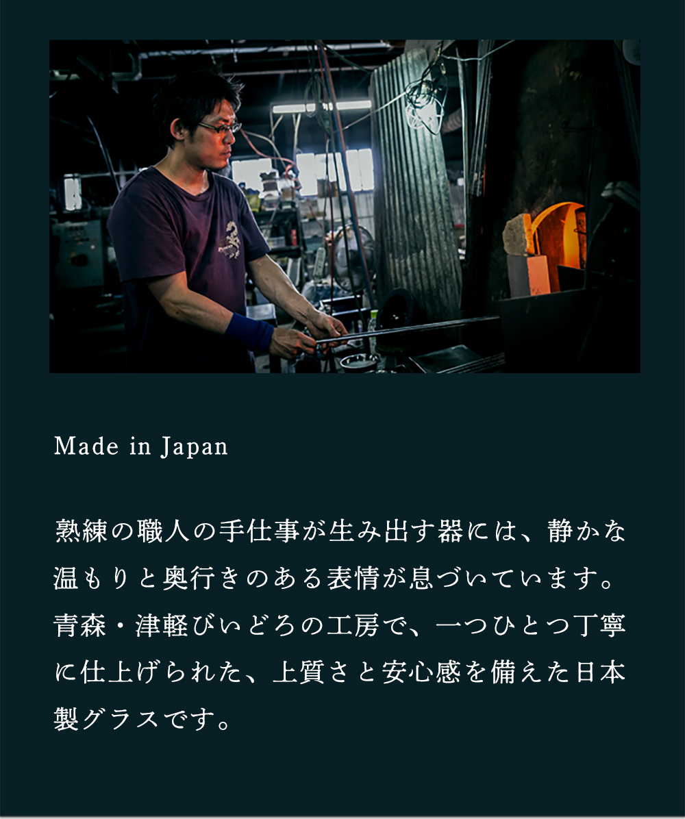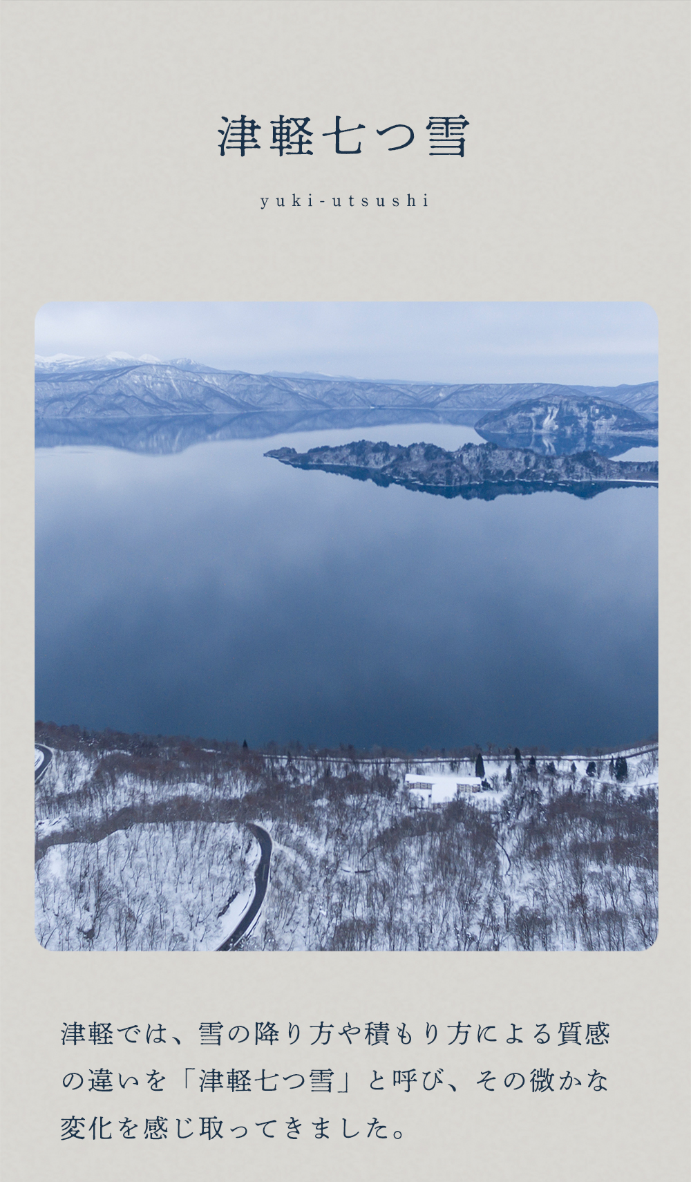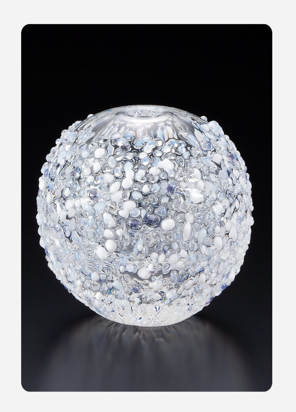 「雪うつし」は、雪の降り方や質感の違いを感じ分ける津軽七つ雪の感性をもとに、その一瞬のきらめきや気配をガラスに映したシリーズです。