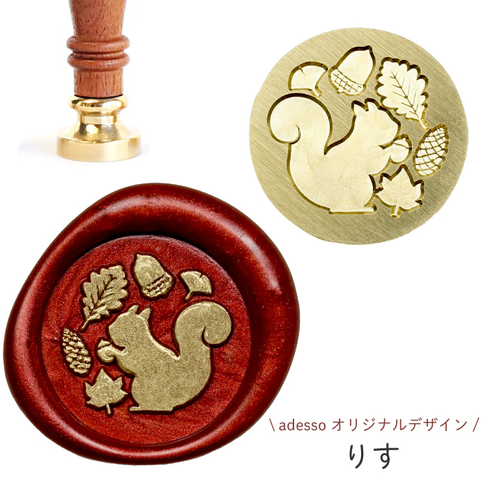 シーリングスタンプ ヘッド < りす >【adessoオリジナルデザイン】 秋 リス どんぐり アニマル 交換用 シーリングワックス 封蝋 付け替え