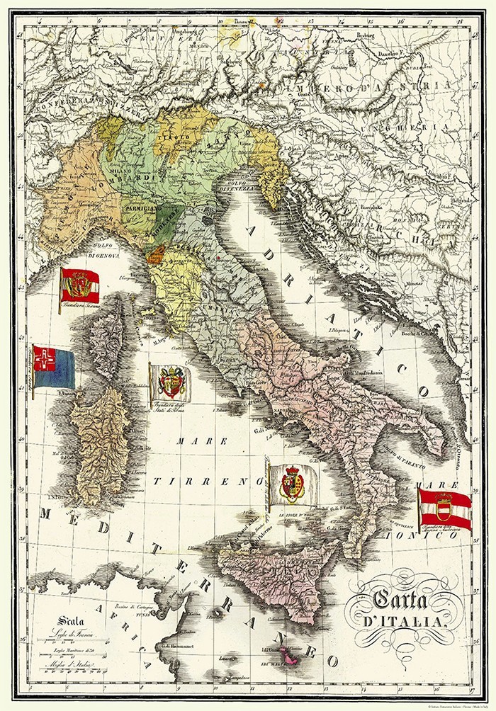 クラシックなイタリアの古地図アンティークマップを高級紙製のポスターに。ラッピング用の包装紙としても使えます。
