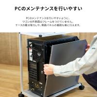 - コの字型で片側面にフレームがないため、PCをワゴンに載せ降ろししやすくなっています。メンテナンス時に側面パネルを外す作業も簡単に行えます。