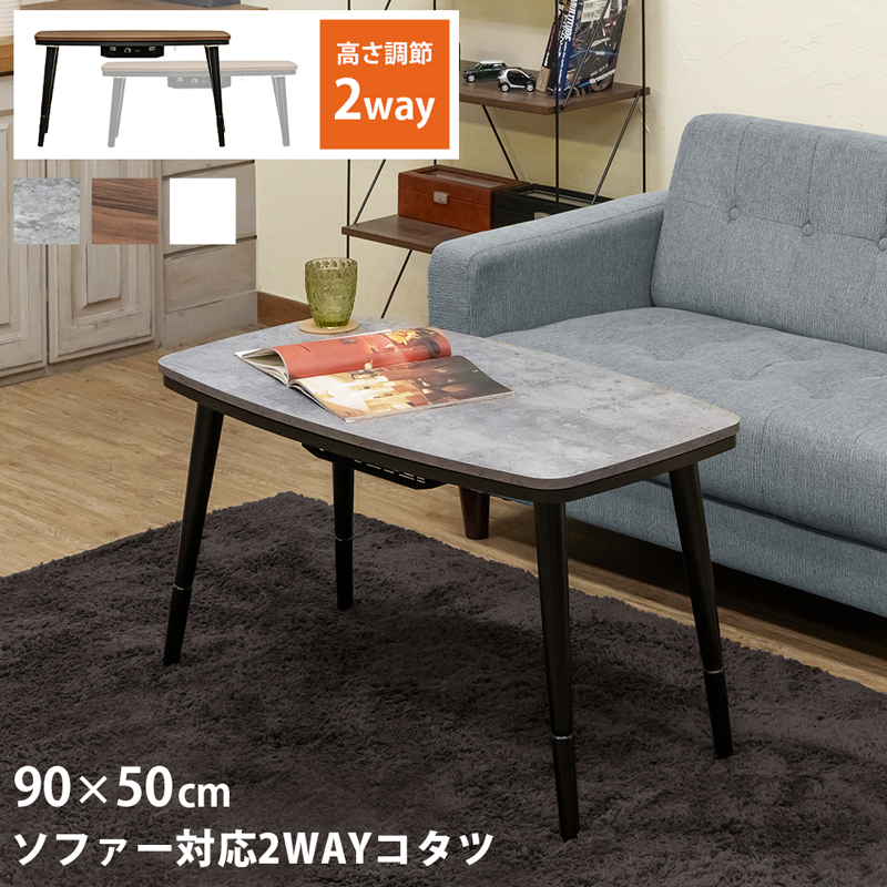 こたつ ハイタイプこたつテーブル ロータイプも対応 90cm×50cm 継脚 ダイニングこたつ 300W DCK-09T コンクリートグレー(CGR)