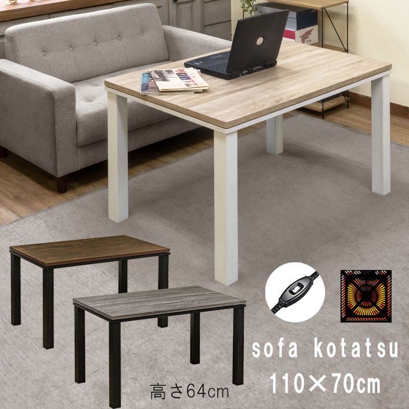 こたつ ダイニングテーブル 110cm×70cm ソファー対応 ハイタイプ 高さ64cm ハイコタツ おしゃれ デスク 机 炬燵 500W 洋風 木目柄天板 爆買