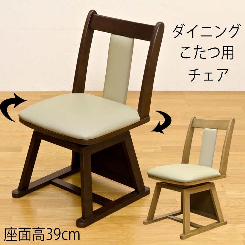 ダイニングチェア 回転チェア 1脚 ダイニングコタツ対応 座面高39cm やや低め 木製 おしゃれ 椅子 回転式 イス モダン 合皮シート