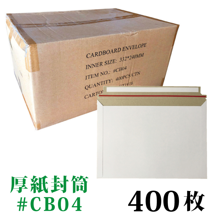 厚紙封筒 #CB04 1箱400枚入り (A4・DVDトールケース2枚) 外寸:約240x332mm