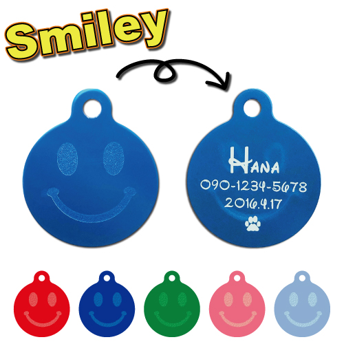 迷子札 アルミ スマイリー / スマイル ペット用 ドッグタグ 名札 名入れ オーダーメイド (代引き不可)