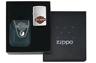 ZIPPO ギフトセット ハーレーダビッドソン本革ライターポーチ ブラック Harley Davidson Lighter Pouch - with loop gift set- HDP6