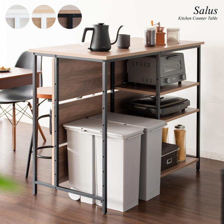 キッチンのゴミ箱や家電をまとめて収納しながら、お料理やカフェタイムもお楽しみいただけるキッチンカウンターテーブル『Salus(サルース)』。