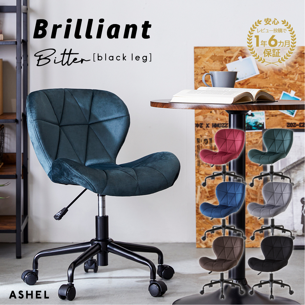 ASHEL brilliant Bitter【アシェル ブリリアント ビター】(黒脚) キャスターチェア【web限定】