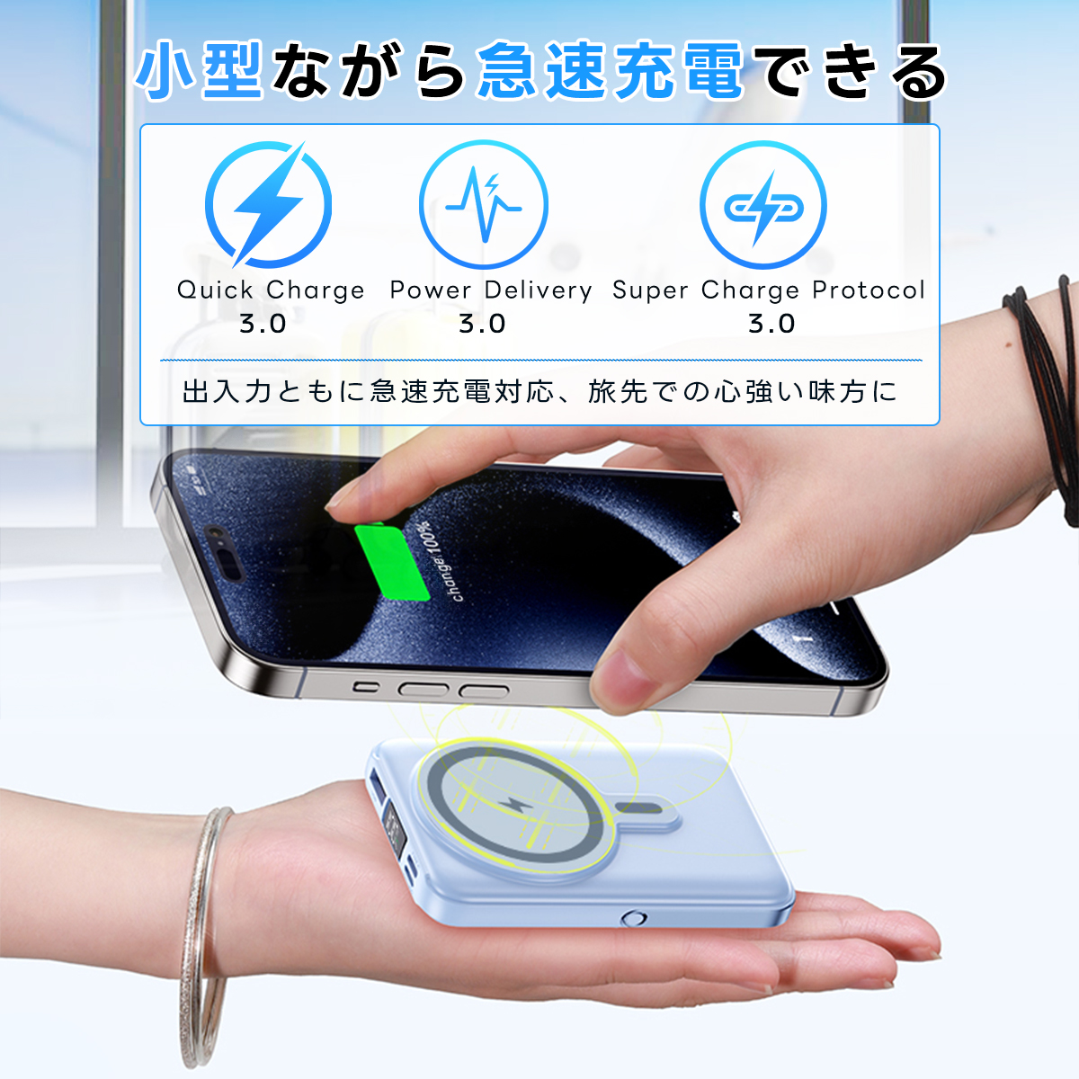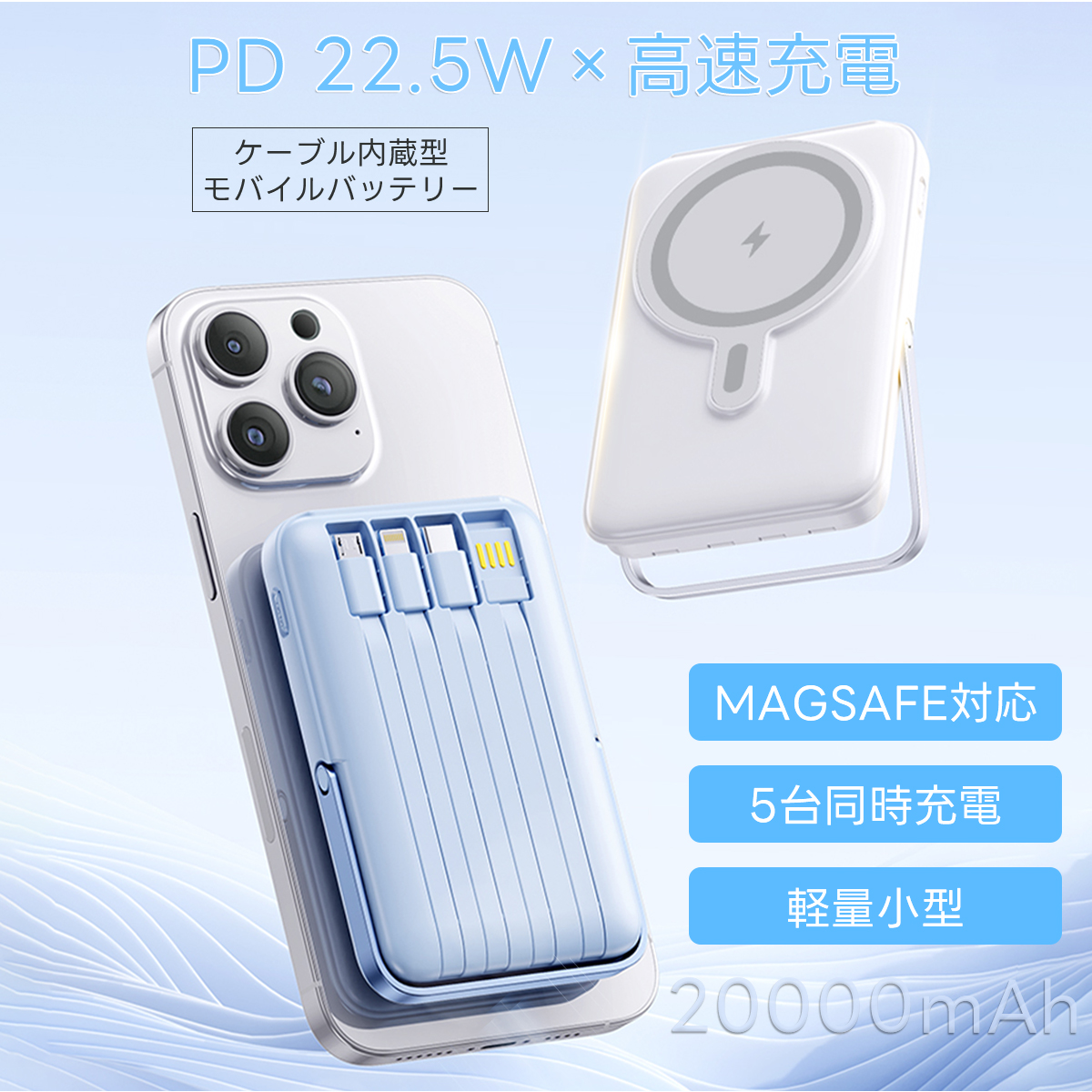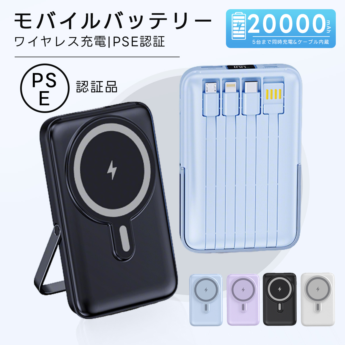 爆買 モバイルバッテリー ワイヤレス充電 magsafe 小型 大容量 20000mAh マグセーフ 軽量薄型 急速充電器 5台同時充電 ワイヤレス高出力 PD QC QI対応 PSE認証済