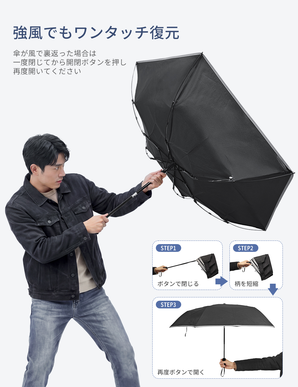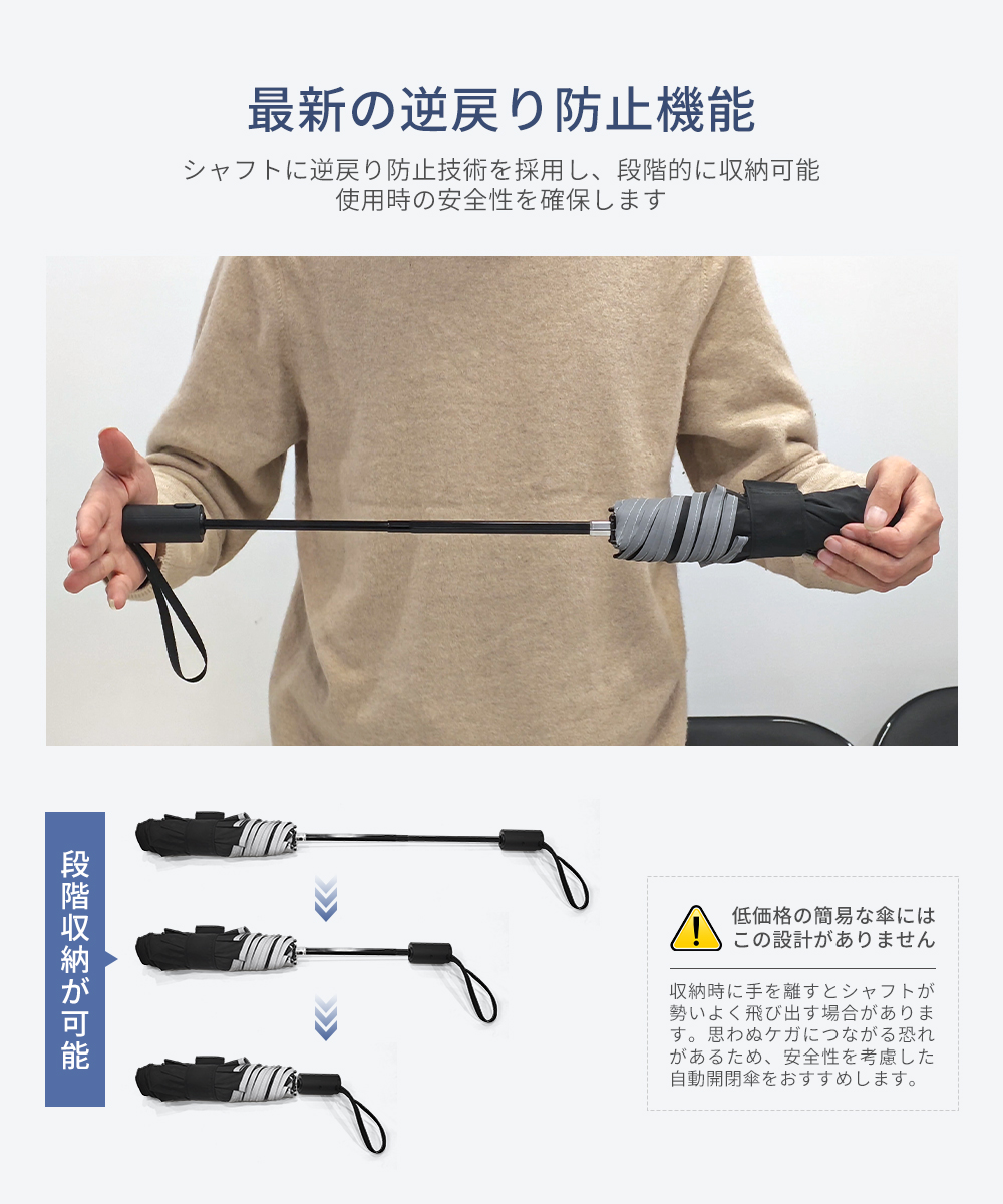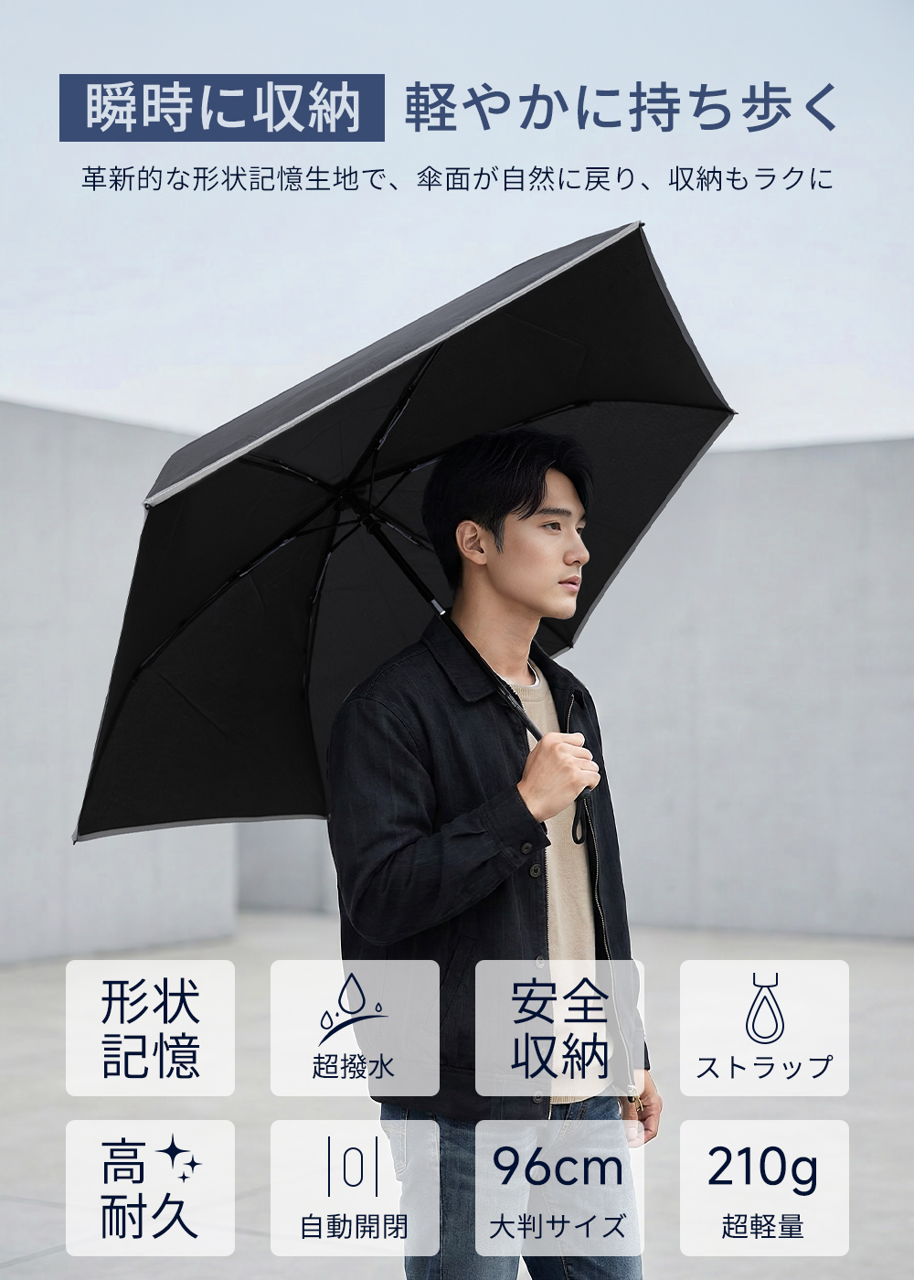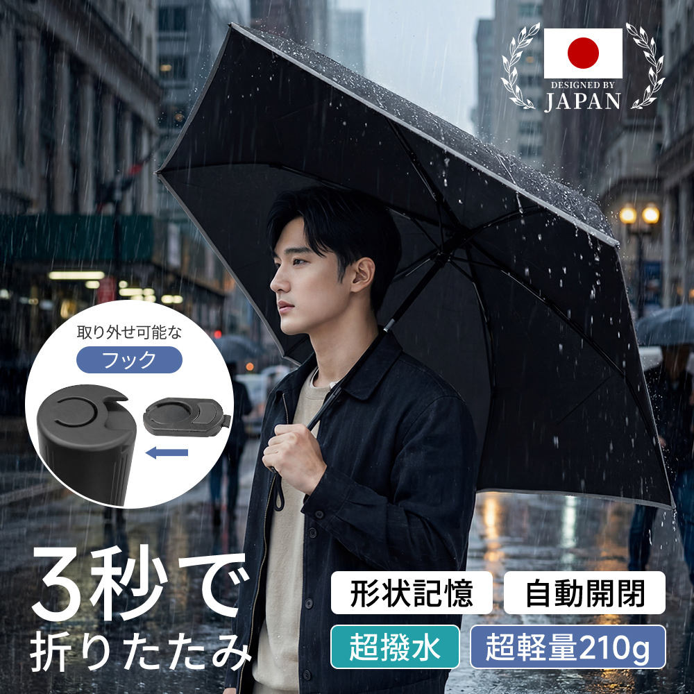 折りたたみ傘 メンズ 折畳み傘 【超軽量210g×形状記憶】 自動開閉 ワンタッチ コンパクト 逆折り 逆戻り防止構造 通勤 ビジネス