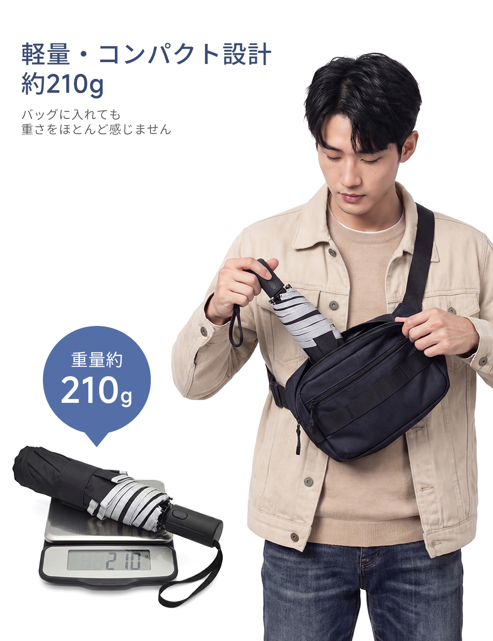 約210gの超軽量設計。スマホより軽く、通勤バッグに入れても負担になりません。