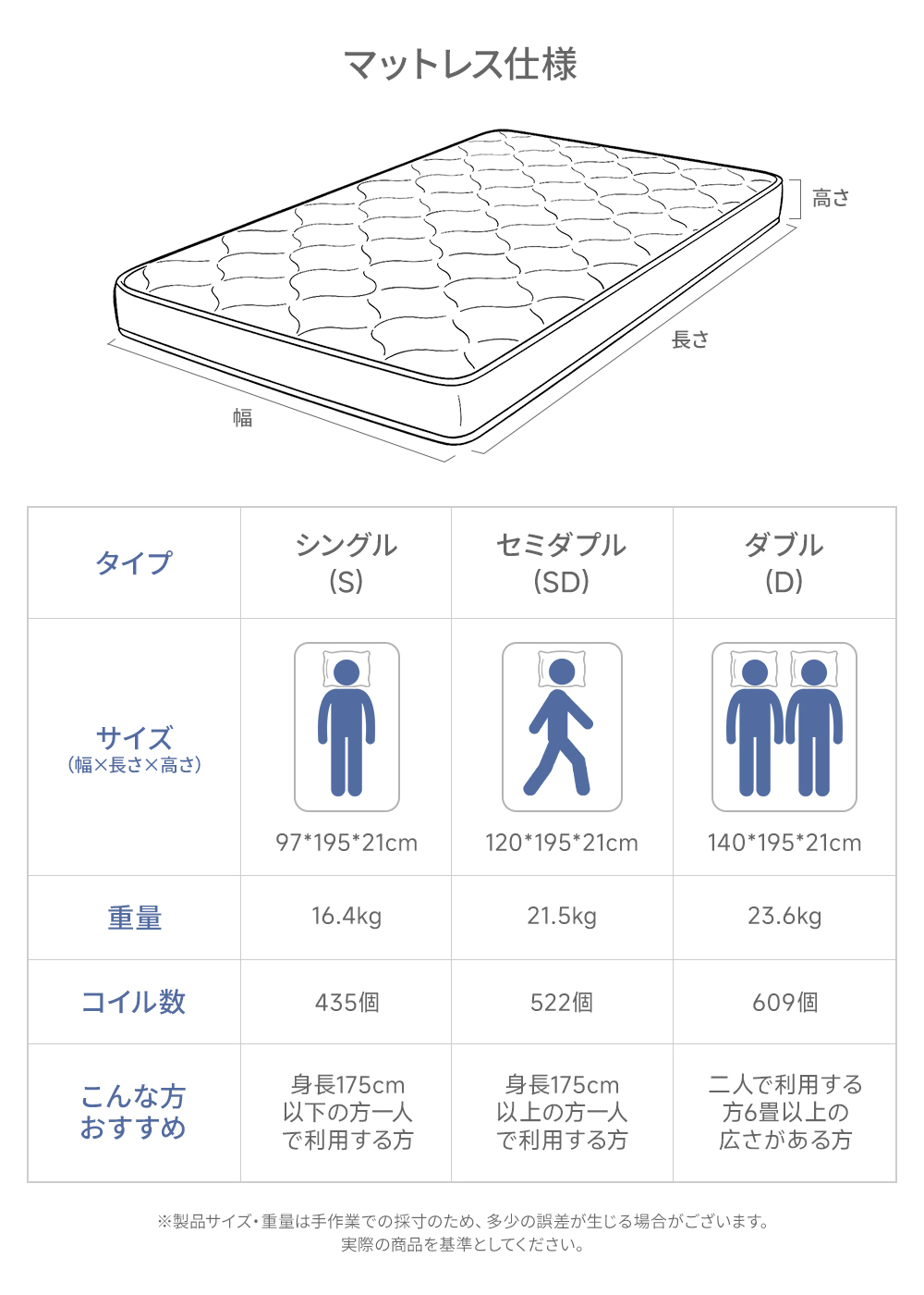 セミダプル(SD):120*195*21cm