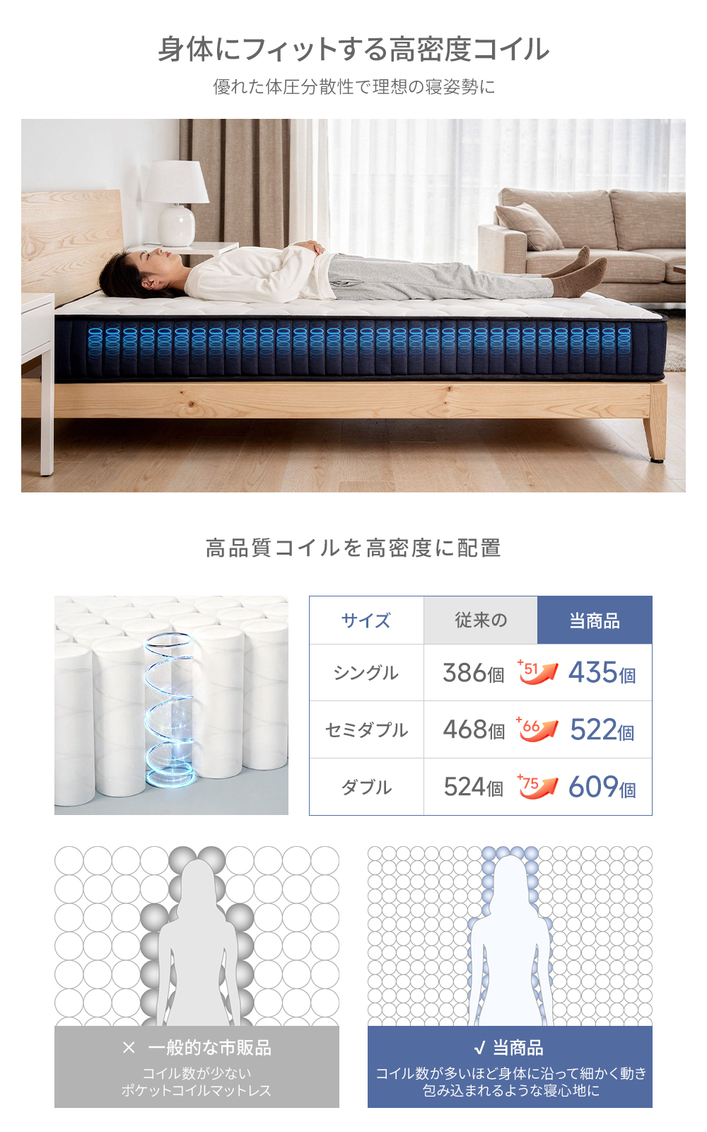 セミダプル(SD):バネ数522個