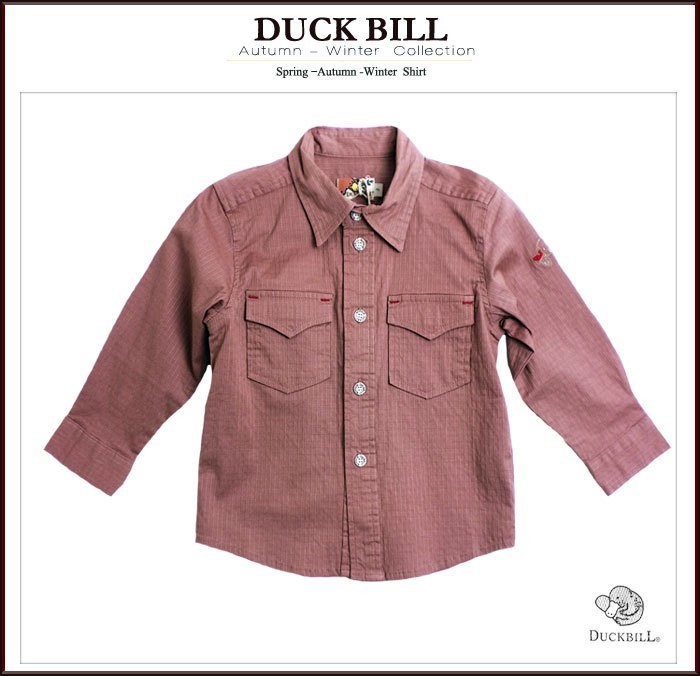 おすすめ ポイント | インポート 子供服 キッズ ディーン男の子 シャツ。左袖にダックビルのロゴとカモノハシ君の刺繍が入ったシンプルデザインのャツです。 生地にチェックの地模様が入った、シャツなのにストレッチが効いていて、すごくよく伸びます。 胸には蓋つきのポケットが二つついていて、蓋の先が尖ったオシャレなデザインになっています。 左腕にはかわいいカモノハシ君とブランドロゴの刺繍がワンポイントで入っています。 シンプルで洗練されたデザインは美しく、落ち着き雰囲気と可愛さを同居していることが魅力です。 上質な綿素材で着心地の良さはお子様が一番知っています。 色もやや渋めのブリック、ナチュラルなサーモンピンクのような落ち着いた色合い。背中にはダックビルのロゴ入りの小さなタグが目を引くポイントに! セーターの下に着ればフォーマルにも使えそう。モノトーンが主流の秋冬でも色彩豊かでシックな装いを楽しみませんか。 日本製品あまり見かけない色使いと洗練されたデザイン。高級感あふれる可愛い正統派の子供服はプレゼントに喜ばれます。 | ||