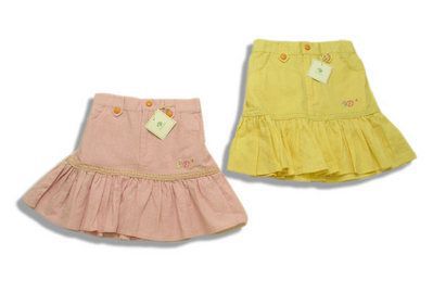 おすすめ ポイント | 柔らかく優しいガーゼ風麻混素材で、夏でもスッキリ快適にお召し頂けるスカート。その素材を活かしたらこんなキュートなスカートになっちゃった。ヒップラインのすぐ下に切り替えを入れ、ここからちょっぴり裾を広げたギャザー寄せAラインのシルエット。切り替えしのラインに同色のレースがステッチ代わりに、お花の刺繍もとってもきれい。前ファスナーとボタンの組み合わせは親しみ易いジーンズと同じ。左右の脇にはアウトポケットが付き、お尻にもポケットが二つ。ウエストは半ゴムになっているので履き心地も楽々、このキラリアイテムでキュートガールに大変身してみよう!一味も二味も違う上品で可愛いインポートブランド子供服は、出産祝いや、お誕生日プレゼント、ギフト贈答品に喜ばれます。 | ||