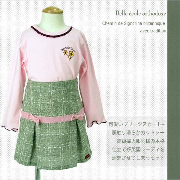 | おすすめ ポイント | さり気ないチェックの模様がお上品な、オーソドックスなスタイル。落ち着いた色合いに、気持ちの良い肌触りの生地を使用したプリーツスカートに、一枚だけでもおしゃれに着こなしできるマルチ長袖Tシャツ。ピアノ発表会や、クリスマスパーティー、結婚式などのお呼ばれに。遊園地や、リゾート、 休日のお出かけの時にも活躍しそう。 セット内容はスカート+長袖Tシャツです。 お手元に届く商品構成は写真とまったく同じです。 用途:発表会、パーティー、遊園地に、リゾート地、旅行に注目的のオシャレ着としておすすめ致します。 お誕生日プレゼントや、クリスマスプレゼントに! | ||