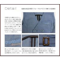 おすすめ ポイント | ダブルボタンのフォーマルベスト まるで映画のワンシーンに出てくるようなイギリス貴族の品格が薫るフォーマルタキシード。ローヤル ノーブルの雰囲気 きちんとの中に遊び心を混ぜて、品ある装いは好印象を与えます。 インポート子供服 男の子 キッズ ジュニア 細いストライプ柄が可愛い正統派フォーマルタキシード(ベスト)です。英国紳士のダブルボタン仕様、冠婚葬祭にもご利用いただけます。ボタンやステッチなど全体を同色でまとめ、落ち着いたシックな雰囲気。ワンポイントで胸元の箱ポケットにDuckbillの上品な刺繍があしらわれています。(ポケット口が高級仕立ての仮止めしてありますので、ご着用の前にお切り下さいませ) 裾は緩やかな湾曲を描く、すっきりしたシルエットが美しい。高級紳士服と同じの本格仕立て。細部にまでこだわりをもたらしたフォーマルベストです。内側の端処理も、別色の違う生地で全てパイピング(包み)仕上げにしています。結婚式や、発表会、お受験 面接 入園式、入学式、お呼ばれなどフォーマルとしてご利用いただけます。お揃いのパンツもご用意しています。ベストとパンツのお揃いにおすすめいたします。日本製品にはあまり見かけないカラフルな色使いが魅力。上品でおしゃれな可愛いインポートブランド子供服は、お誕生日プレゼント、帰省お土産、出産祝い、入園祝いなど贈答品に喜ばれます。 | ||
