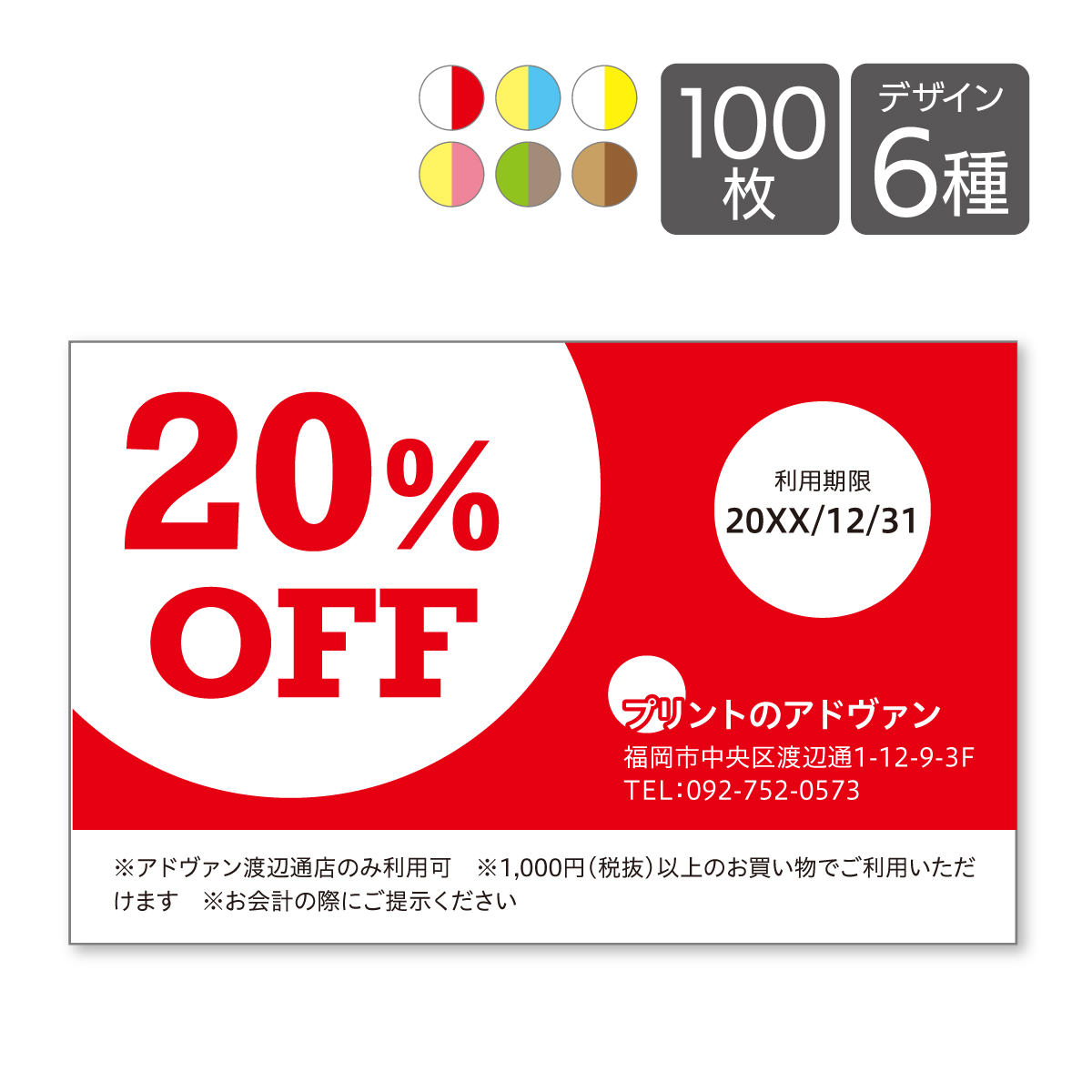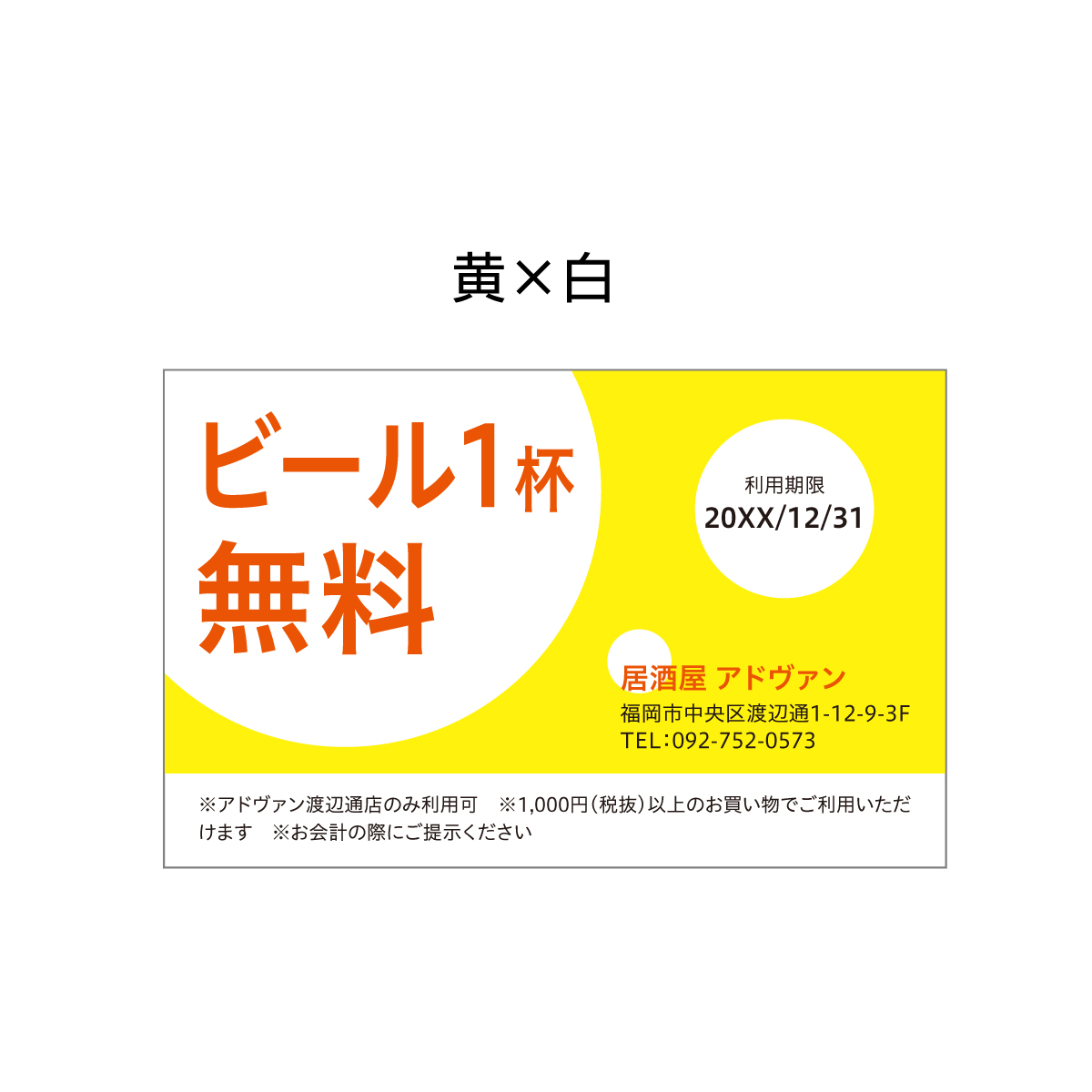 割引券 サービス券 クーポン チケット作成 片面印刷100枚 テンプレートで簡単作成 カラバリ6色 card-201