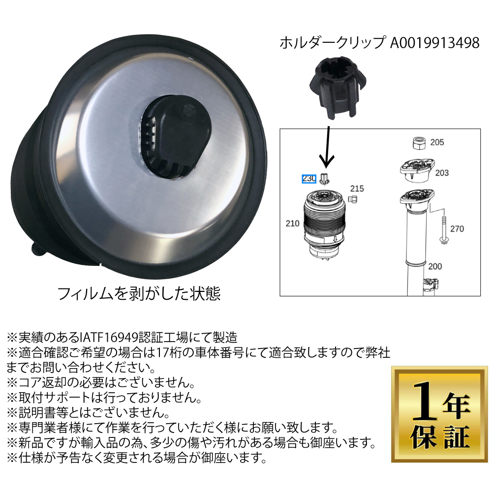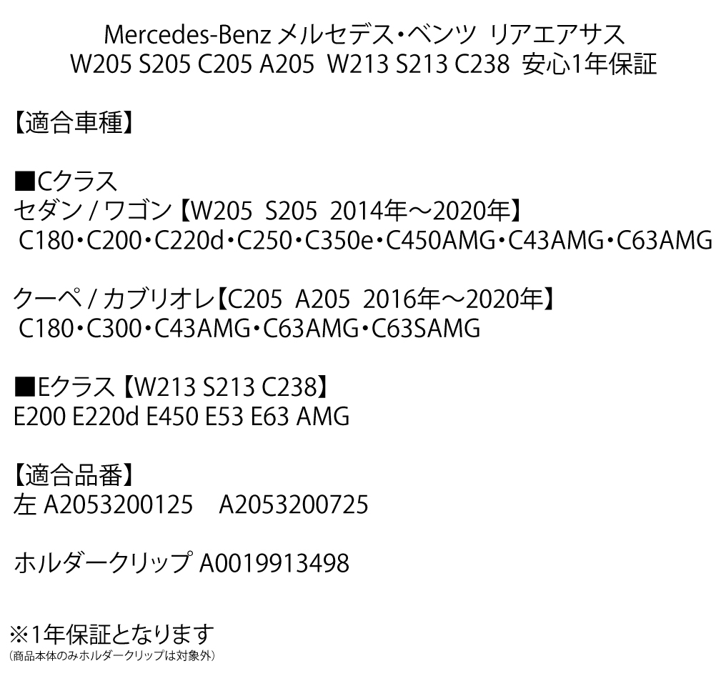 | 商品名 | ベンツ W205 Cクラス リア エアサス 左1本 エアサスペンション S205 C205 A205 A2053200125 A2053200225 安心1年保証 |