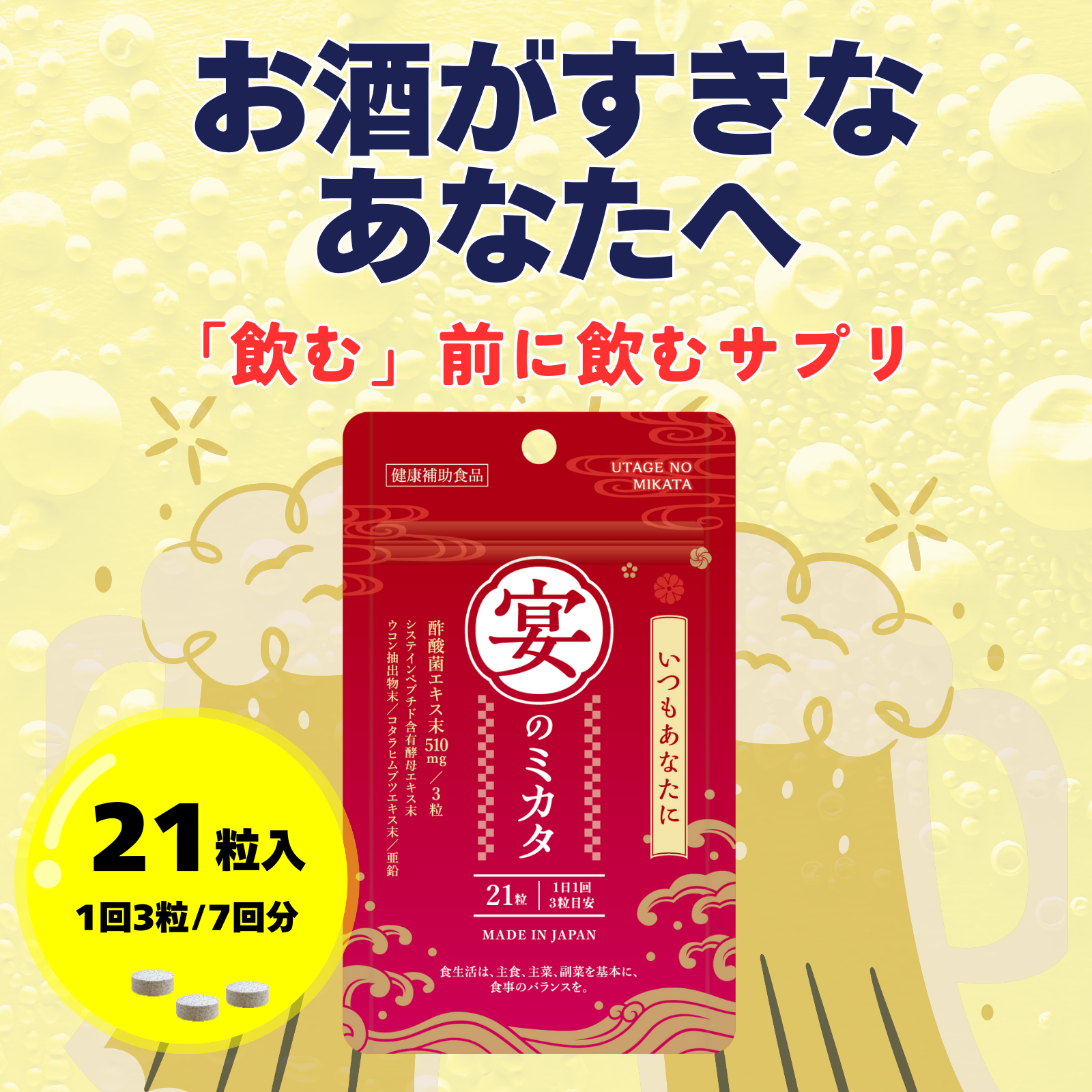 サプリメント ウコンエキス 酢酸菌エキス 健康補助食品 日本製 飲み会 忘新年会 お酒 飲酒 宴会 宴のミカタ 1日3粒 7日分 21粒入