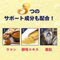 酢酸菌抽出物末(デキストリン、グルコース、酢酸菌エキス、キトサンオリゴ糖)(韓国製造)、コタラヒムブツエキス末、酵母エキス末、亜鉛含有酵母、ウコンエキス末/セルロース、ステアリン酸カルシウム、微粒酸化ケイ素、(一部に大豆・かにを含む)