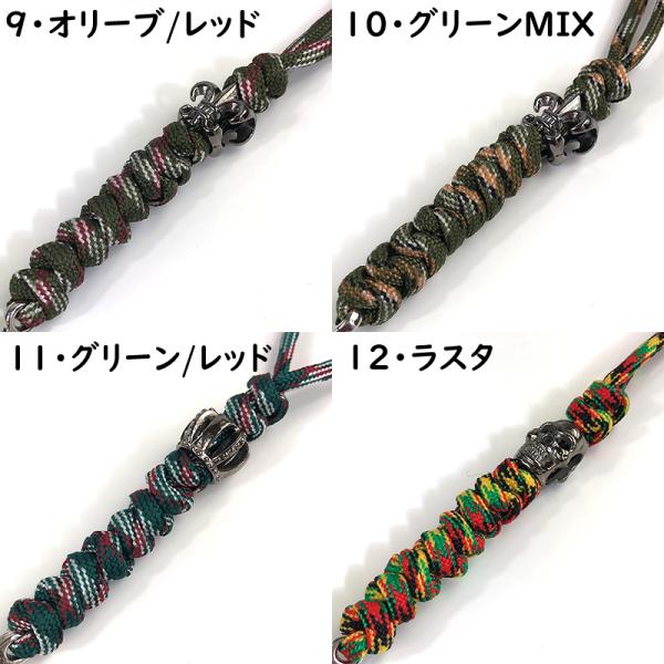 ほどけば1mの強力なロープとして利用可能なパラシュートコードで製作しています。