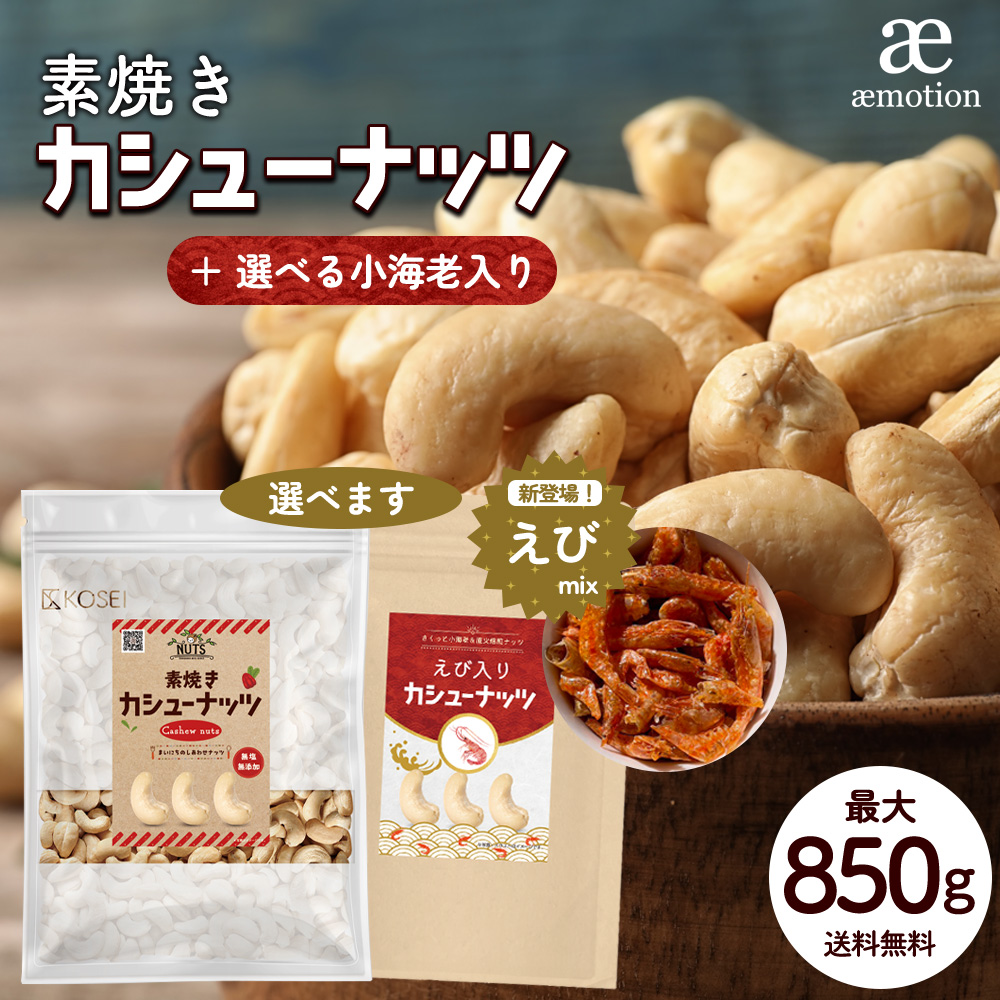 カシューナッツ 最大850g 素焼き 種類が選べる えび入り 国内製造 無塩 無添加 無油 ロースト ナッツ えび エビ 海老 美容 健康 おやつ おつまみ Y