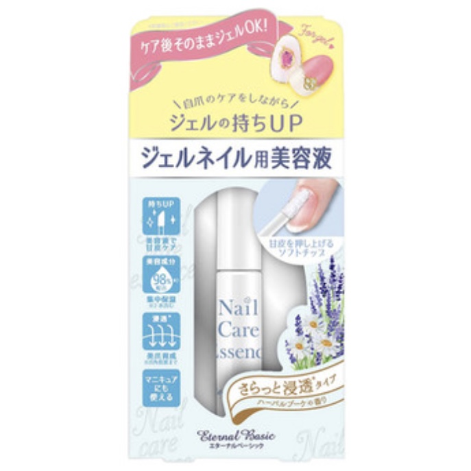 【商品名】EBネイルケアエッセンスkirei?05【ブランド】ETERNAL BASIC(エターナルベーシック)【JAN】4511692157454【商品説明】●美容液成分を98%配合(※1)。ジェル施術前に使用して爪乾燥を防ぐことで、自爪をケアしながらジェルを楽しむことができます。●独自開発の水系処方なので、ジェル施術直前に使用してもジェルが縮んだり浮いたりすることがありません。●先端部分には甘皮ケアができるソフトチップを採用しているので、甘皮処理と爪のケアが同時に可能です。また、ジェル施術後に使用を継続することで、集中保湿成分が爪や爪まわりの乾燥を防ぎ、爪が健康に保たれた状態が継続します。さらに、ジェルをオフした後には、爪の内側まで届く浸透成分が、サンディングやリムーバーで傷んだ自爪をしっかり補修し、健康な状態を保つことができます。●美容液がさらっと浸透(※2 )するタイプ〈ハーバルブーケの香り〉と、爪がしっかり潤うタイプ〈フローラルブーケの香り〉の2種展開。●ジェル前・ジェル中・ジェルオフ後いつでもケアできるので、爪を健康に保つことができます。●※1 水含む ※2 爪角質層まで。【使用方法】【使用上の注意】【成分/原材料】【生産国/原産国】