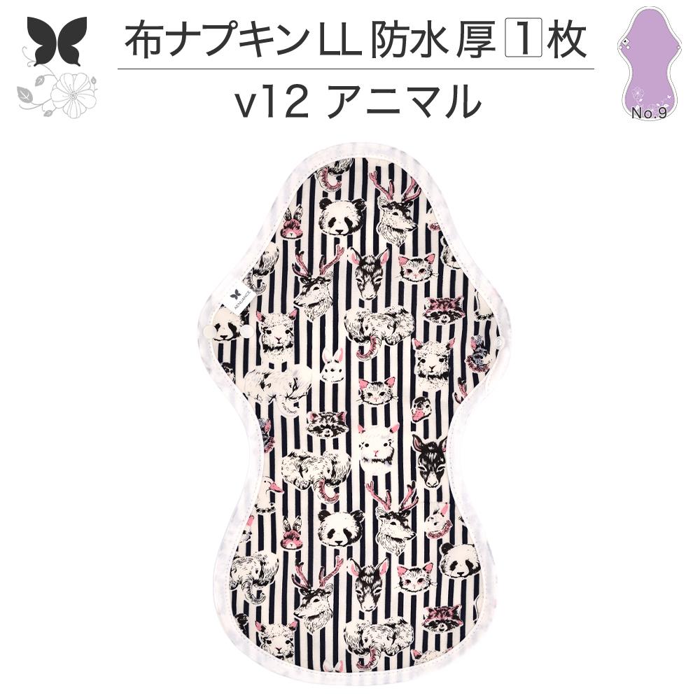 オーガニック 布ナプキン LL・防水 厚手 特に多い夜用 キングサイズ生理ナプキン 軽失禁パッド 中量用 AENUANCE エニュアンス V12 アニマル AELLW-1P