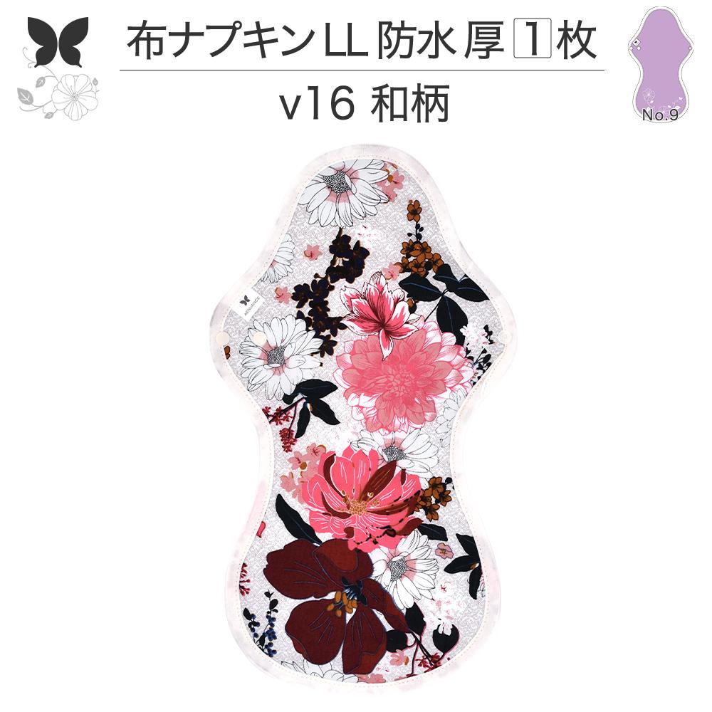オーガニック 布ナプキン LL・防水 厚手 特に多い夜用 ロングタイプ 生理ナプキン 尿ケアパッド 中量用 AENUANCE エニュアンス V16. 和柄 AELLW-1P