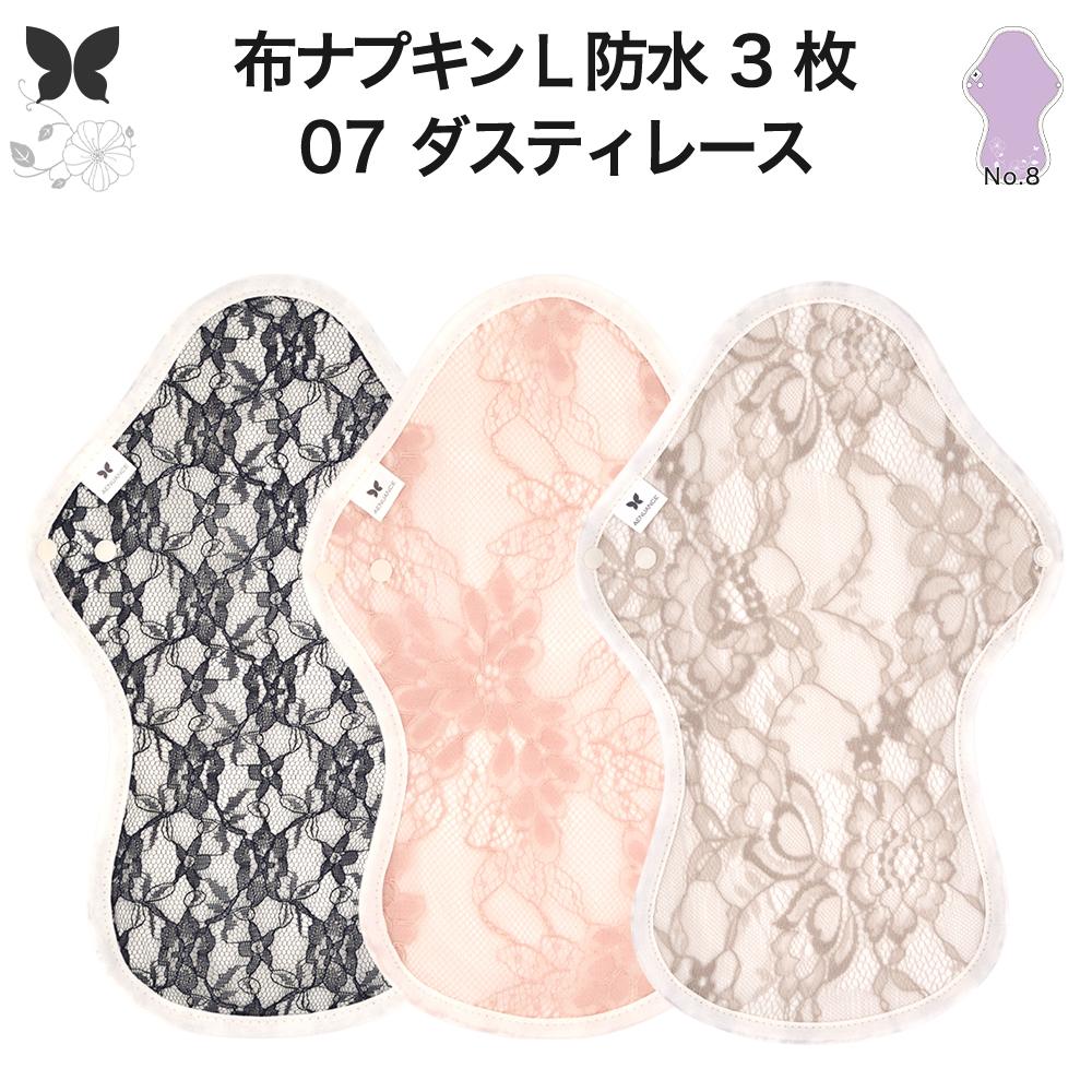 オーガニック 布ナプキン L3枚セット 防水 厚手 夜用 生理ナプキン 吸水ナプキン AENUANCE ダスティレース AELW-3P-v07