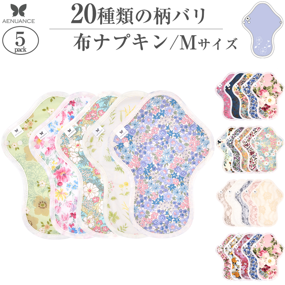 布ナプキン M・防水 厚手 5枚セットAEMWH-5P-MV エニュアンス オーガニックコットン 生理ナプキン 中軽量用尿もれパット 商品番号 AEMWH-5P-MV