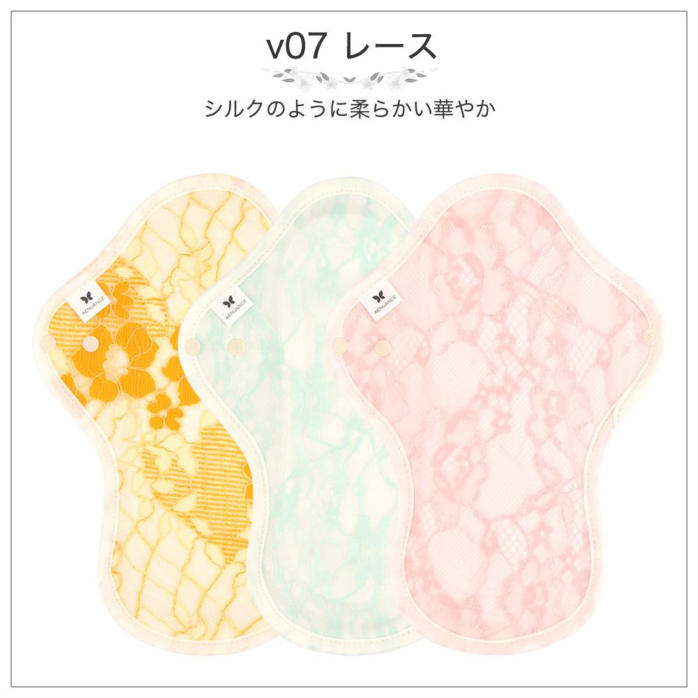 布ナプキン Mサイズ 防水 薄手 3枚セット AEMWT-3P レース オーガニックコットン使用 多い昼用 生理ナプキン 軽失禁 尿漏れバッド 送料無料
