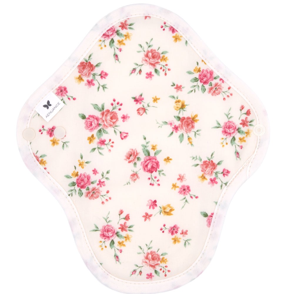 肌面がオーガニックコットンのショーツと同じニット生地で、優しい肌ざわりと、素肌感が優れています。軽い日昼用の生理ナプキンに最適な、防水布入りで羽根つきのオーガニックコットン使用した一体型の布ナプキンです。使い慣れた紙ナプキンの使い良さと吸水量を実現しながら、カサカサという音がない、かぶれない、ムレがこもらず肌にやさしい、長時間たってもさらさらして、快適に着用いただけます。紙ナプキン特有のカサカサという音も、ムレがこもらず肌にやさしい、長時間たってもさらさら!バラエティ豊かで好きな柄、かわいい柄を楽しんでお選びいただけます。082