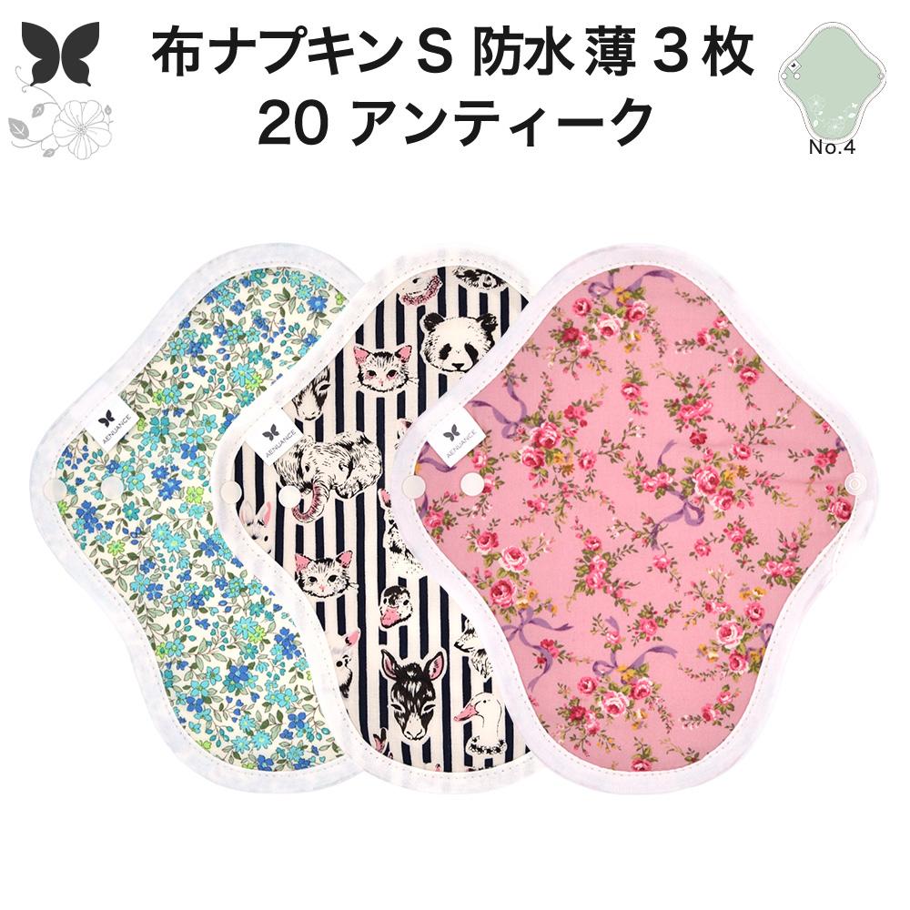 オーガニック 布ナプキン S・防水 薄手 3枚セット 軽い日昼用 生理ナプキン 少量用尿モレケアパッド AENUANCE 20. アンティーク AESWT-3P-v20
