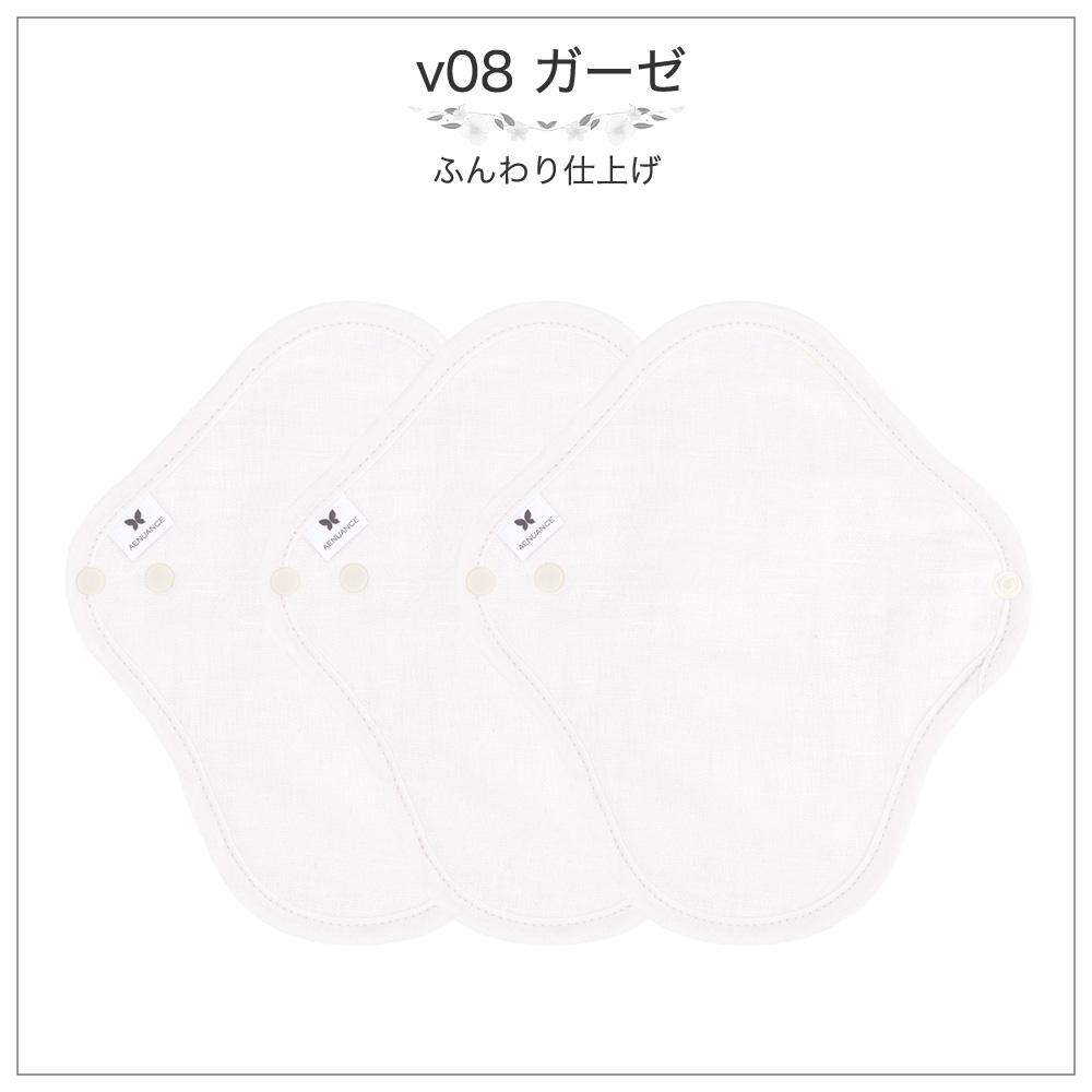 オーガニック 布ナプキン S・防水 薄手 3枚セット 軽い日昼用 生理ナプキン 少量用尿モレケアパッド AENUANCE エニュアンス 08. ガーゼ AESWT-3P-v08