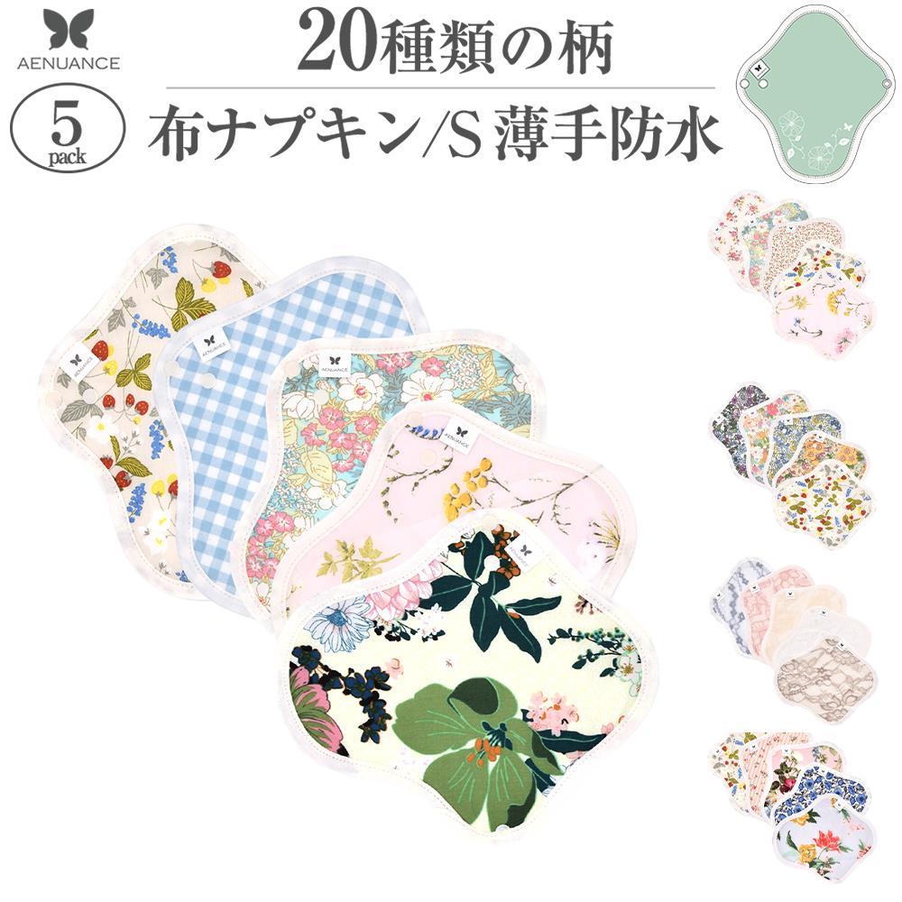 オーガニック 布ナプキン S・防水 薄手 5枚セット 軽い日昼用 生理ナプキン 少量用尿モレケアパッド AENUANCE AESWT-5P-mv-1