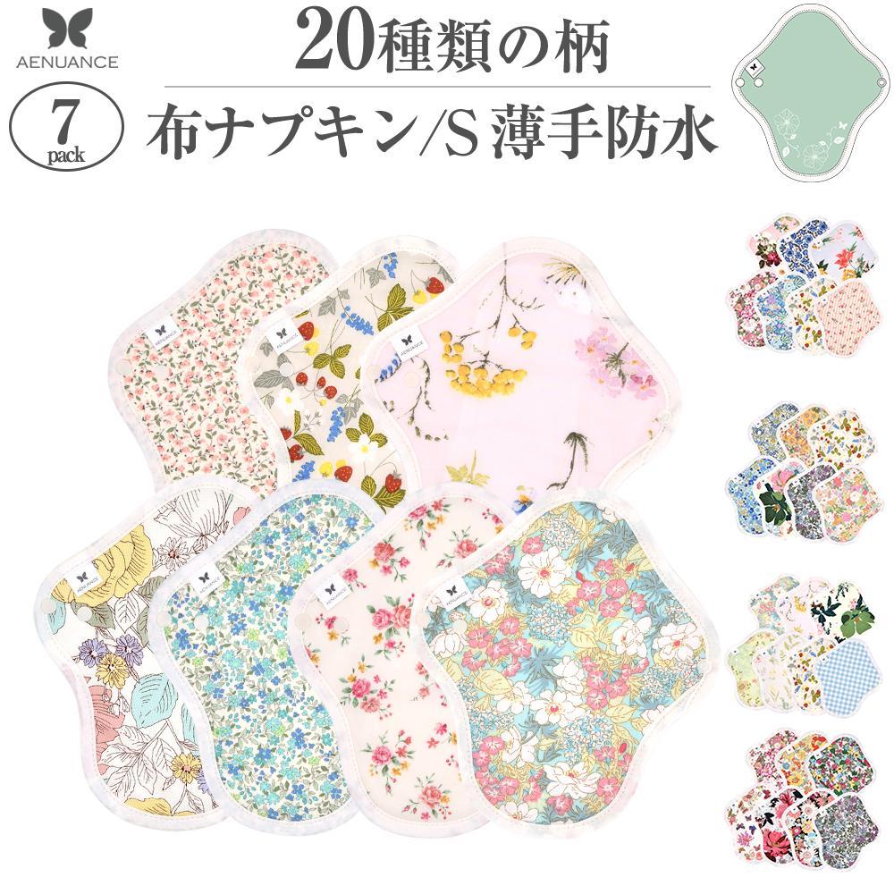 20種類の柄から選択OK オーガニック 布ナプキン 7枚セット S・防水 薄手 軽い日昼用 生理ナプキン 少量用尿モレケアパッド AENUANCE エニュアンス AESWT-7P-mv1