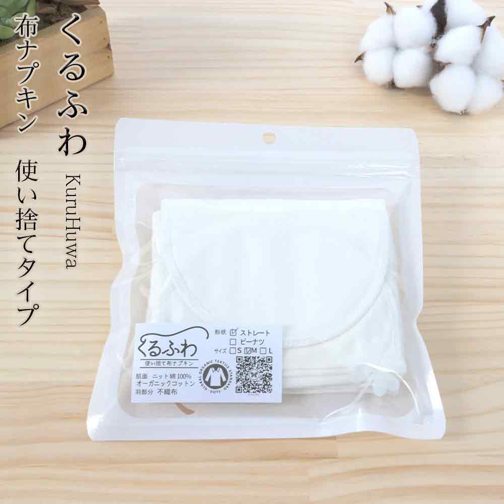使い捨て布ナプキン 羽根つき 10枚 オーガニックコットン 生理用ナプキン 吸水ライナー ナプキンカバー [くるふわ]