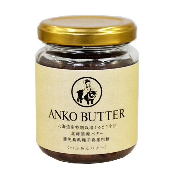 北海道産特別栽培しゅまり小豆、北海道産バター、鹿児島県種子島産粗糖のみを使用した低糖度のつぶあんバターです。
