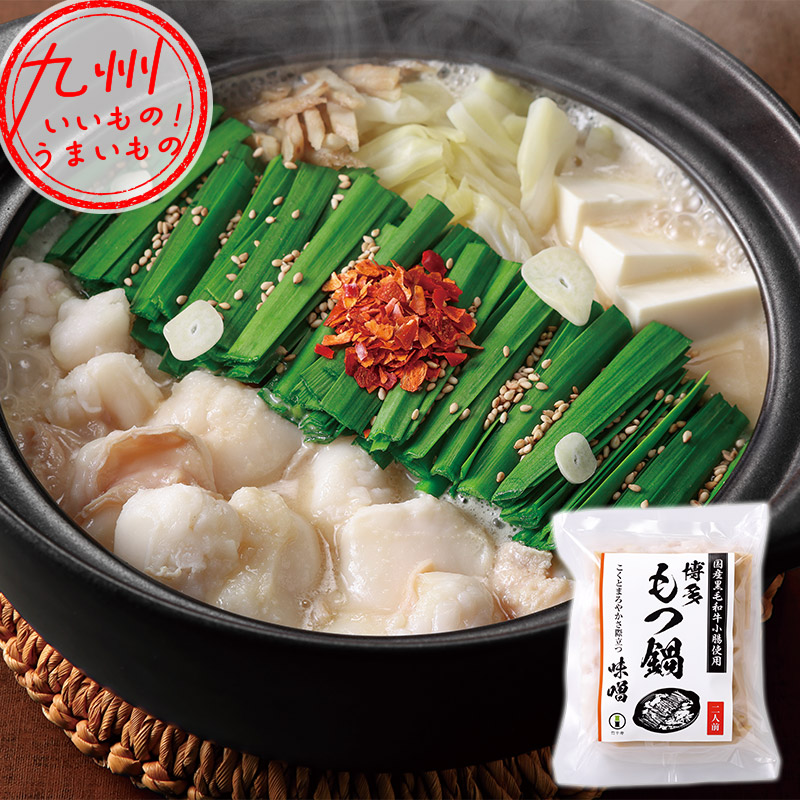 原材料 牛小腸カット(国産)、もつ鍋スープ味噌【混合だし汁(とびうおの 焼干し(国内製造)、昆布(国産)、かつおのふし(国内製造)、白味 噌、料理酒、醤油(小麦・大豆を含む)、本みりん、砂糖、にんにく(国産)、ねりごま、食塩】