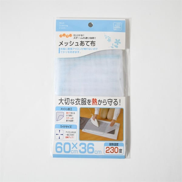 メッシュ加工で当て布の下の衣服が透けて見え、スチームの通りも良く、プレスがきれいに仕上がります。