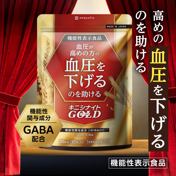 健康診断の数値判定が気になりだしたら「キニシナイト」 健康寿命を意識したセルメディケーションサプリ「キニシナイト」から血圧ケアサプリメントが登場。 GABA(ギャバ)のチカラで、血圧が高めの方の血圧を下げるのを助ける、消費者庁に登録された機能性表示食品のサプリメント(届出番号:H1290) さらに、ナットウキナーゼやサーディンペプチド、胡麻エキスなど、気になる血圧をケアするサポート成分もしっかり配合。 自覚症状のない、血圧高めの状態。でも放っておくと大変な事になるかも。 あなたのために、そして家族や大切な人に負担をかけないためにも、早めのケアを始めましょう!