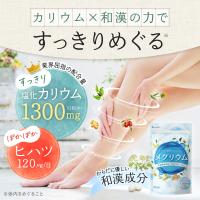 すっきりの秘訣「カリウム」と「ヒハツ」、さらに4つの植物由来成分を配合したナチュラルブレンド製法であなたのどんよりな悩みを解消します。 カリウムはたっぷり塩化カリウムとして1,300mg配合。ヒハツも有用成分量の120μg入れいました。(1日10粒目安) メグリウムはカラダとココロをやさしくサポートするというコンセプトの元、同じ悩みをかかえる女性陣が先頭に立ち本当に欲しい物・良いものを作りました。 ずっと同じ姿勢で仕事をしなければならない、エアコンが苦手、そんな方を本気で応援します。 気分晴れやかに、おしゃれが楽しめる素敵な毎日を送れますように。