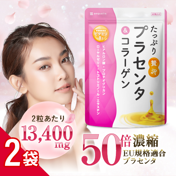 「たっぷり贅沢プラセンタ&コラーゲン」は、プラセンタなど女性にうれしい成分を豊富に配合した美容サプリメントです。本製品だけで美容と健康に良いさまざまな成分を摂取できる、「飲むオールインワン美容液」を目指して開発いたしました。「いろいろ試してみたい」という欲張りな人にも「どれを選べばいいかわからない」という人にも、自信をもっておすすめできるサプリメントです。栄養機能食品として、基準値を満たす量のビタミンB2を配合。美と健康をサポートする成分も厳選して加え、配合量にもこだわりました。