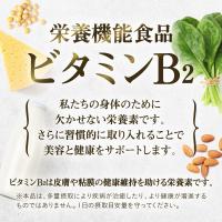 ビタミンB2を1日分(2粒)を配合しました。国による栄養成分量の基準を満たす栄養機能食品です。ビタミンB2は皮膚や粘膜の健康維持を助ける栄養素です。肉や魚介類、乳製品、卵、野菜などに含まれています。