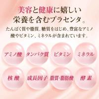 【原材料・成分】プラセンタ抽出物(イタリア製造)、食用オリーブ油、食用ぶどう油、食用こめ油、ローヤルゼリー、コラーゲンペプチド、プロテオグリカン含有鮭鼻軟骨抽出物(デキストリン、サケ鼻軟骨抽出物)、エラスチン(魚由来)/ゼラチン、グリセリン、ミツロウ、グリセリン脂肪酸エステル、カラメル色素、ビタミンB2、ビタミンC、ヒアルロン酸、トコトリエノール、(一部に豚肉・さけ・ゼラチンを含む)