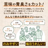 国産野菜と24種類、国産果実を8種類、さらに8種類のスーパーフードをぎゅっとサプリメントにしました。 栄養バランスもしっかり考えました。ベジーグッドはマルチビタミン(ビタミンB1、ビタミンC、ビタミンE)をしっかり1日分配合、野菜不足がきになる方におすすめの野菜サプリメントです。 青汁のような苦味がなく穀物の風味と野菜果実の甘みを感じる優しい風味で飲みやすい。野菜ジュースのように糖質やカロリーを心配する必要もありません。